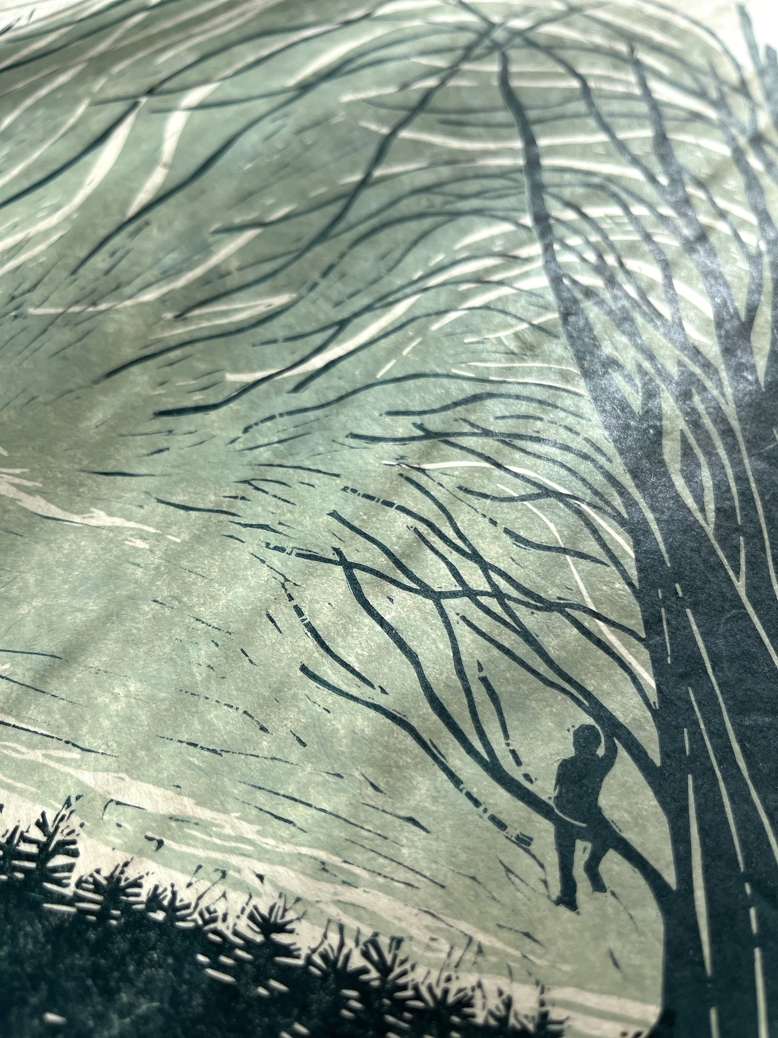 Der Tag, an dem ich diese Grafik dann gedruckt habe, war überhaupt kein leichter, sondern ein ganz furchtbar schwerer und schlimmer. Und ich war froh um die Erinnerung an den kleinen leichten Moment im Wald.